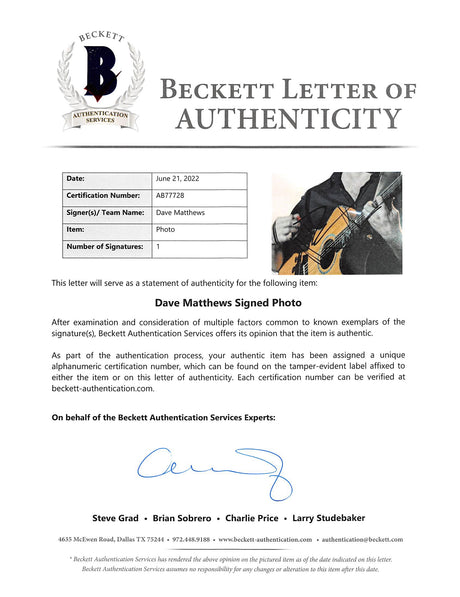 Very low stock (1 unit)$339Unit price /UnavailableDave Matthews Autographed 11x14 Photo DM Band Beckett BAS #AC95468