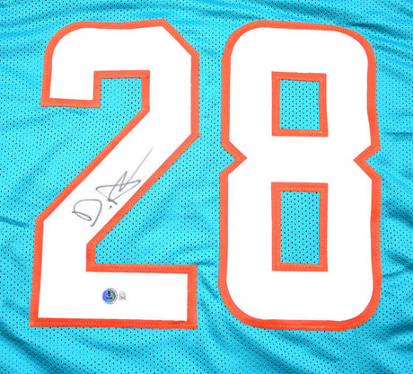 De'Von Achane Authentic Signed Teal Pro Style Framed Jersey BAS Witnessed