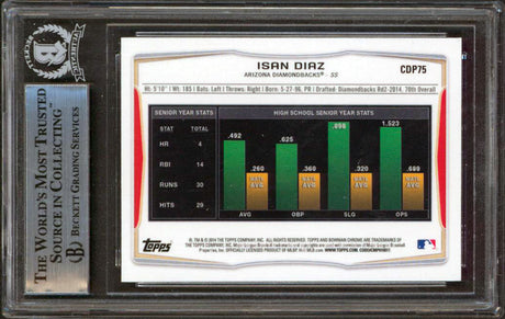Very low stock (1 unit)$889Unit price /Unavailable D-Backs Isan Diaz Signed 2014 Bowman Chrome Draft #CDP75 Rookie Card BAS Slabbed