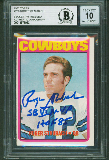 Cowboys Roger Staubach HOF 85 Authentic Signed 1972 Topps #200 Card BAS Slabbed