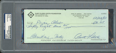 Very low stock (1 unit)$259Unit price /UnavailableCurt Flood Autographed 3.5x8.5 Check St. Louis Cardinals (Signed Twice) PSA/DNA #83933924