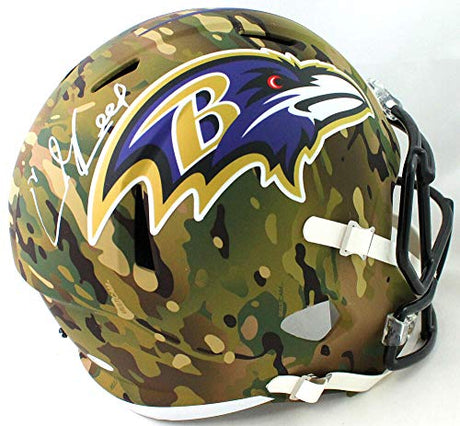 Ed Reed Signed Baltimore Ravens F/S Camo Speed Helmet - Beckett Witnessed