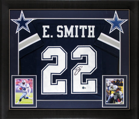 Emmitt Smith Authentic Signed Navy Blue Pro Style Framed Jersey BAS Witnessed