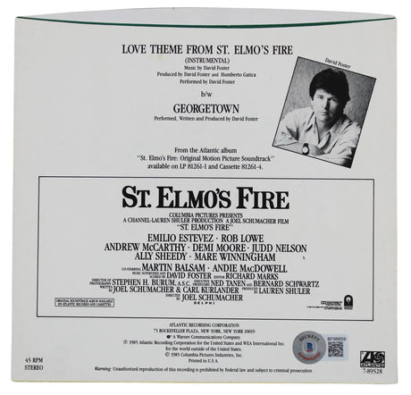 Emilio Estevez & Andrew McCarthy St. Elmo's Fire Signed 45 RPM Album Cover BAS