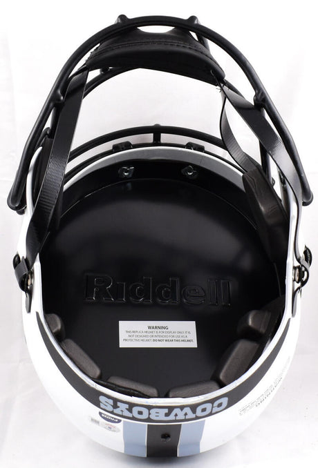 Emmitt Smith Autographed F/S Cowboys Flat White Speed Helmet- Beckett W Hologram