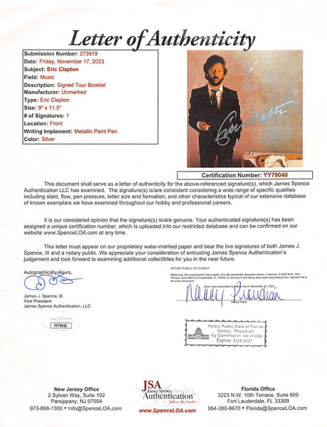 Eric Clapton Authentic Signed 9x11.5 Money & Cigarettes Program JSA #YY79040
