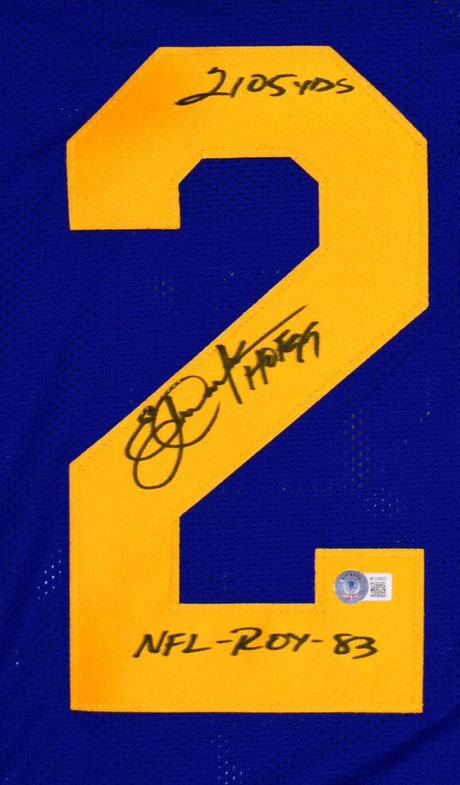 Eric Dickerson Autographed Blue Pro Style STAT Jersey w/ HOF - Beckett W Holo