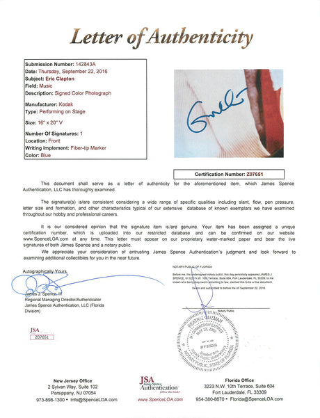 Eric Clapton Authentic Signed 16X20 Photo w/ Vintage Signature JSA #Z07651