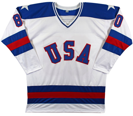 1980 USA Hockey 19 Autos Craig, Eruzione, Broten Signed White Jersey BAS Wit
