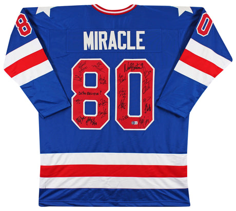 1980 Miracle on Ice Team USA Signed Blue Pro Style Jersey w/18 Sigs - Beckett W
