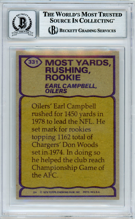 1979 Topps Record Breaker #390 Earl Campbell Houston Oilers BGS Autograph 10