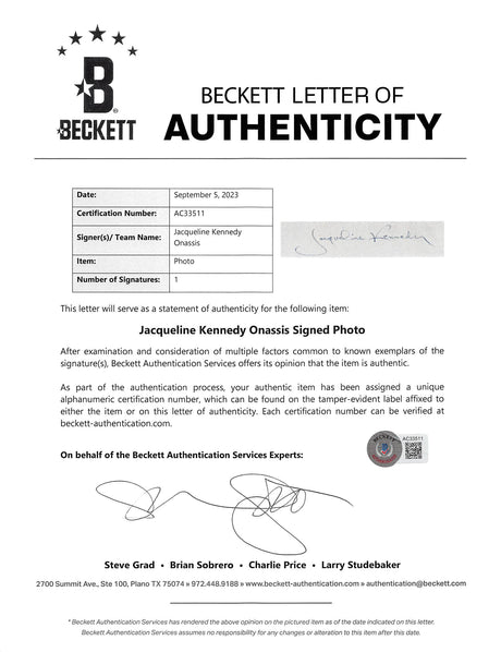 Jacqueline Kennedy Onassis Signed 9.75x13.25 White House Framed Photo BAS