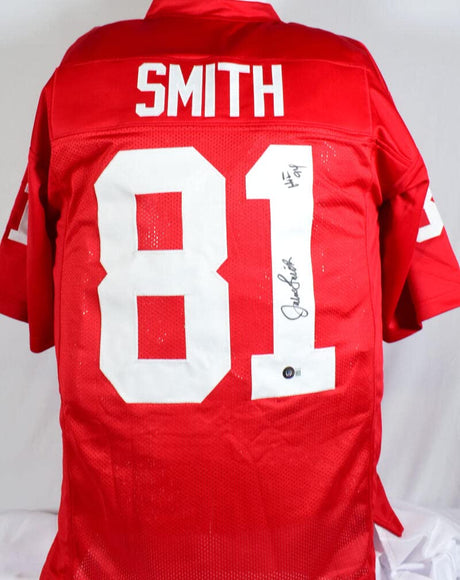 Jackie Smith Autographed Red Pro Style Jersey w/HOF- Beckett W Hologram *Black