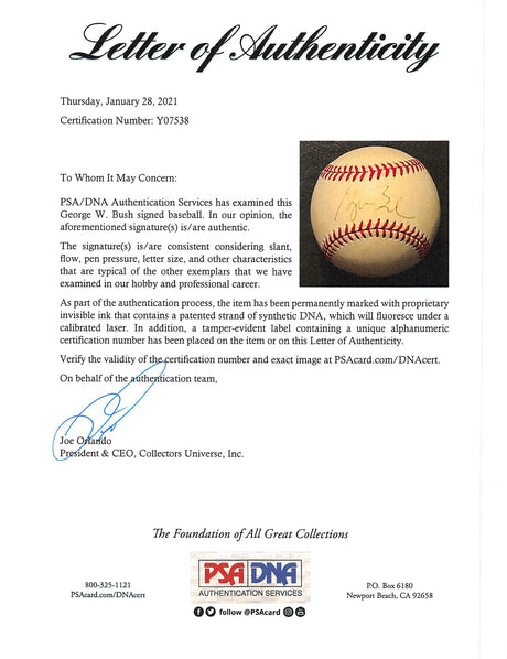 George W. Bush Authentic Signed Coleman Onl Baseball Autographed PSA/DNA #Y07538