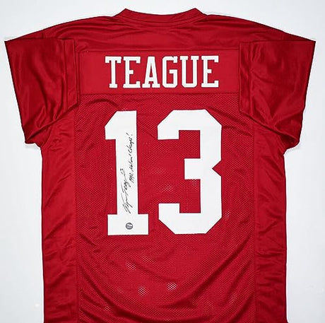 George Teague Autographed Crimson College Style Jersey w/ 92 Champs - Prova