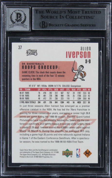 76ers Allen Iverson Signed 1999 Upper Deck Retro #37 Card Auto 10! BAS Slabbed