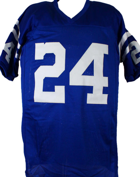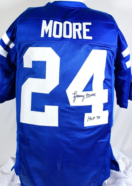 Lenny Moore Autographed Blue Pro STAT Style Jersey w/HOF-Prova *Black