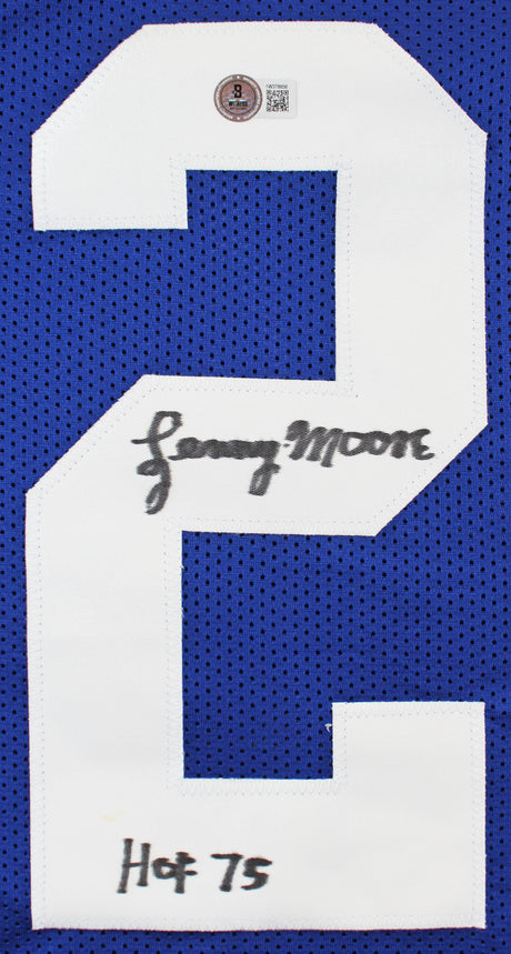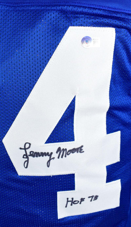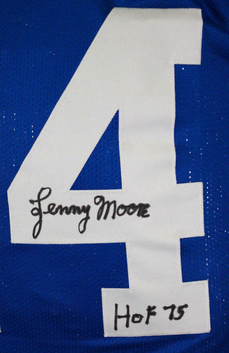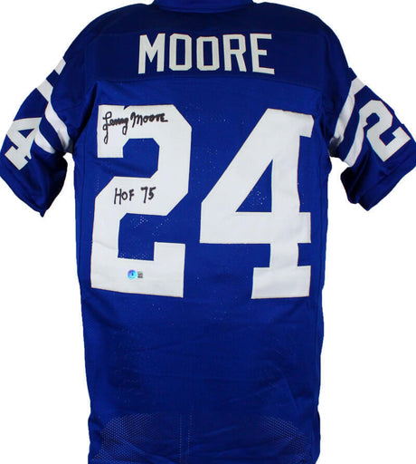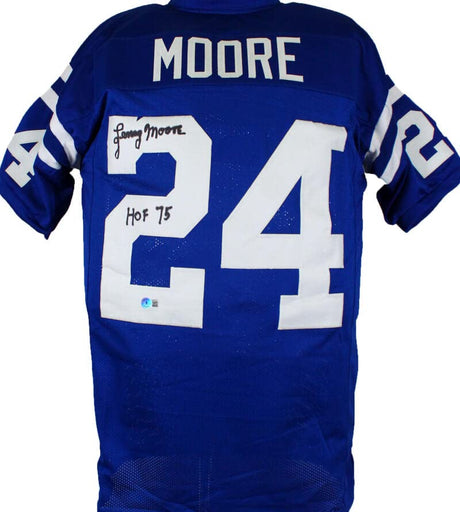 Lenny Moore Autographed Blue Pro Style Jersey w/HOF-Beckett W Hologram *Black*R2