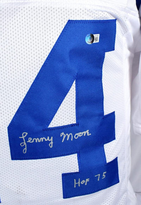 Lenny Moore Autographed White Pro Style Jersey w/HOF-Beckett W Hologram *Silver