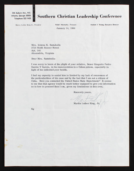 Martin Luther King Jr. Signed 8.5x11 1966 Letter On SCLC Letterhead BAS #AA03721