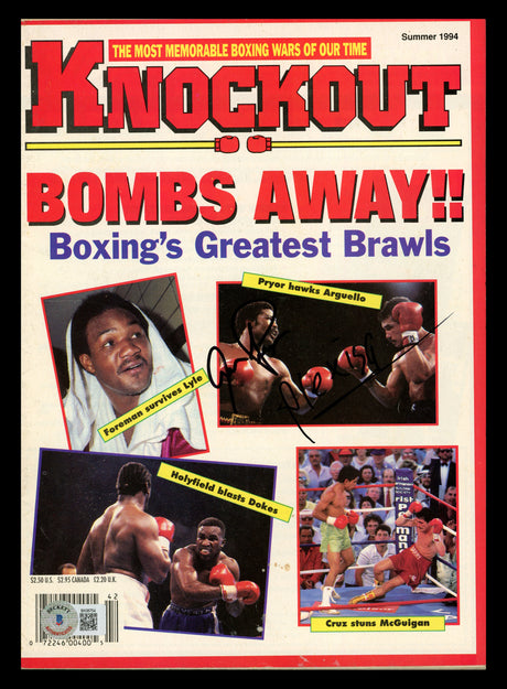 Very low stock (1 unit)$99Unit price /UnavailableAaron Pryor & Alexis Arguello Autographed KO Magazine Beckett BAS QR #BK08754
