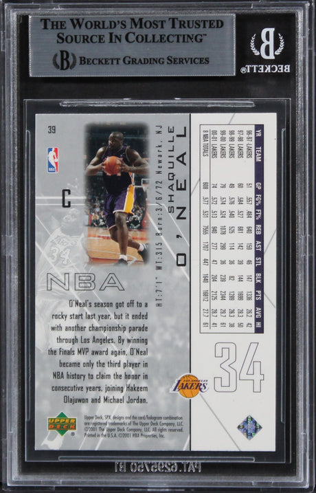 Lakers Shaquille O'Neal Authentic Signed 2001 SPX #39 Card BAS Slabbed