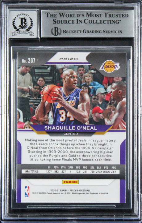 Lakers Shaquille O'Neal Signed 2020 Panini Prizm #207 Card Auto 10! BAS Slabbed