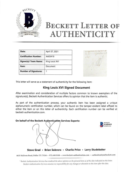 - Ships FreeKing Louis XVI Authentic Signed 8.5x13 1786 Document Dated BAS #AA03419 Very low stock (1 unit)$7,139Unit price /Unavailable