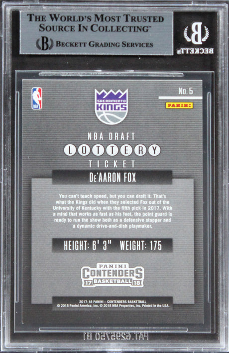 - Ships FreeKings De'Aaron Fox Signed 2017 Panini Contenders Lottery Ticket #5 Card BAS Slab Very low stock (1 unit)$199Unit price /Unavailable