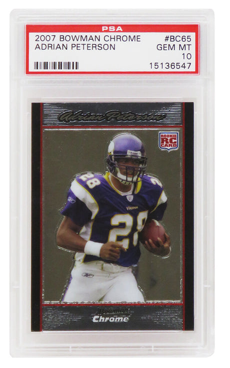 Adrian Peterson (Minnesota Vikings) 2007 Bowman Chrome #BC65 RC Rookie Card - PSA 10 GEM MINT