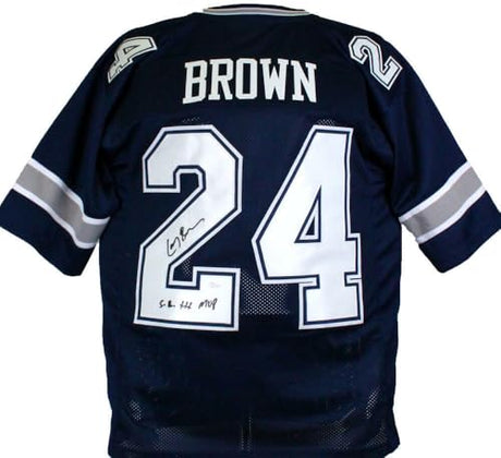 Larry Brown Signed Navy Custom Football Jersey w/SB XXX MVP