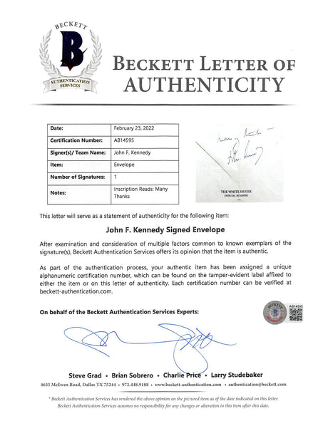 John F. Kennedy "Many Thanks" Authentic Signed & Framed Envelope BAS #AB14595
