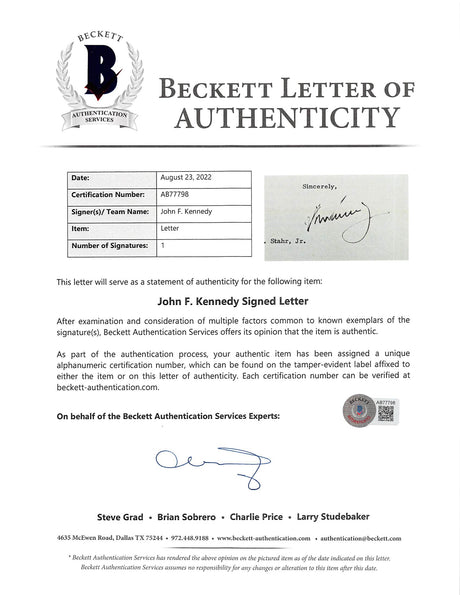 John F. Kennedy Authentic Signed 1961 Letter Auto Graded Mint 9! BAS #AB76880