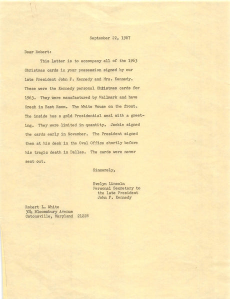 John F. Kennedy & Jaqueline Onassis Signed 1963 Unsent Christmas Card BAS LOA