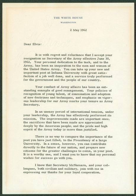 John F. Kennedy Signed 7x10.25 1962 2 Page Letter On White House Letterhead BAS