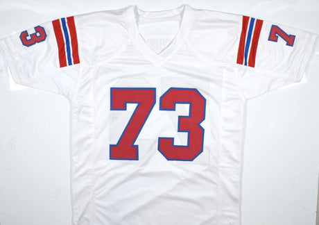 John Hannah Autographed White Pro Style Jersey w/HOF - Prova *Silver