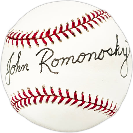 Very low stock (1 unit)$99Unit price /UnavailableJohn Romonosky Autographed Official MLB Baseball Cardinals, Senators Beckett BAS QR #BL93581