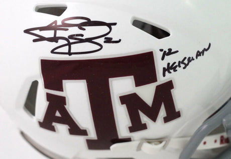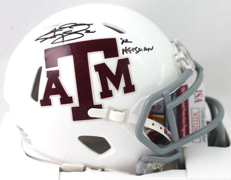 Johnny Manziel Heisman Signed Texas A&M White Schutt Mini Helmet- JSA W Auth