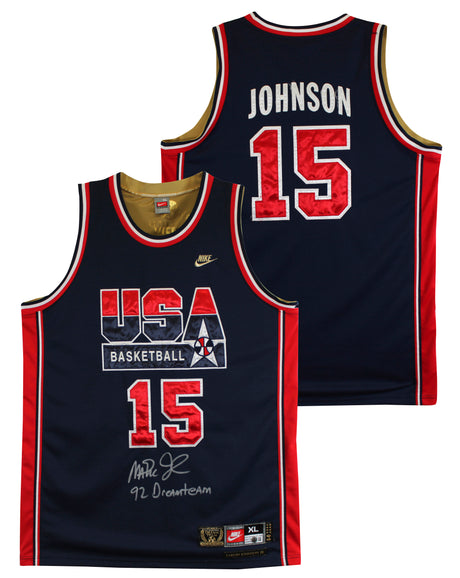 Magic Johnson "92 Dreamteam" Signed Navy Nike Team USA Jersey BAS Wit #2W898640