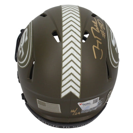 Jerry Rice Signed 49ers F/S Salute to Service Speed Helmet - Fanatics *Gold