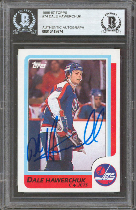 Very low stock (1 unit)$569Unit price /Unavailable Jets Dale Hawerchuk Authentic Signed 1986-87 Topps #74 Card BAS Slabbed