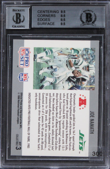 Jets Joe Namath Signed 1990 Pro Set SB MVPS #3 Card NM-MT 8.5 Auto 8 BAS Slabbed