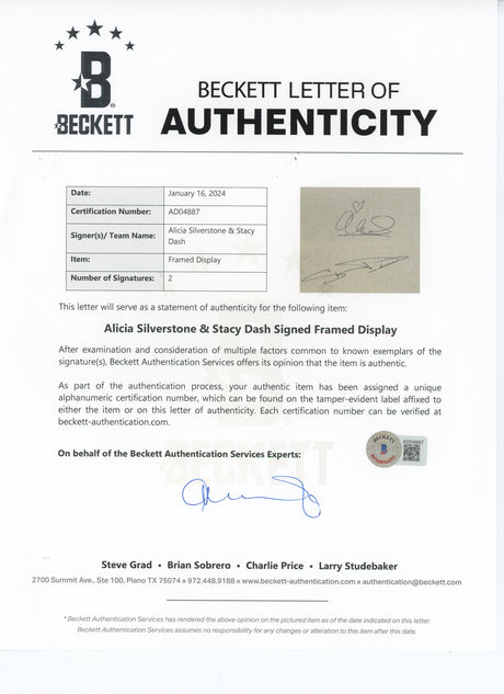 Alicia Silverstone & Stacy Dash Clueless Signed Index Card Framed Display BAS