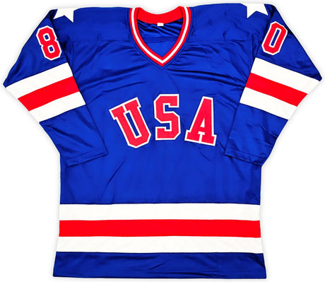 1980 USA Miracle On Ice (19) Team Signed Blue Olympic Hockey Jersey BAS