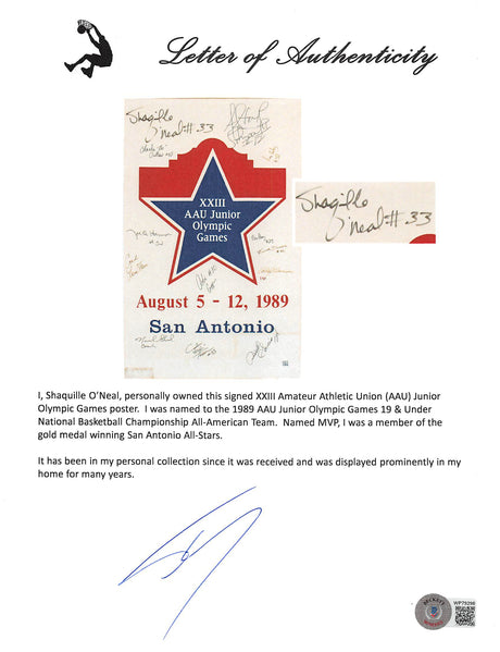 1989 AAU National Champion Shaquille O'Neal, Bo Outlaw Signed 14x22 Poster BAS