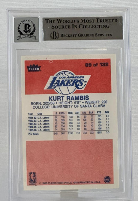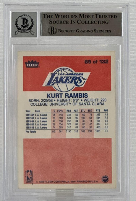 1986-87 Fleer #89 Kurt Rambis Auto Los Angles Lakers BGS Autograph 10