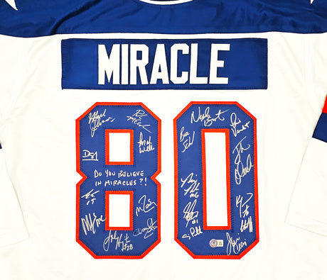 1980 USA Hockey 19 Autos Craig, Eruzione, Broten Signed White Jersey BAS Wit