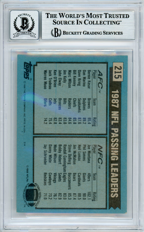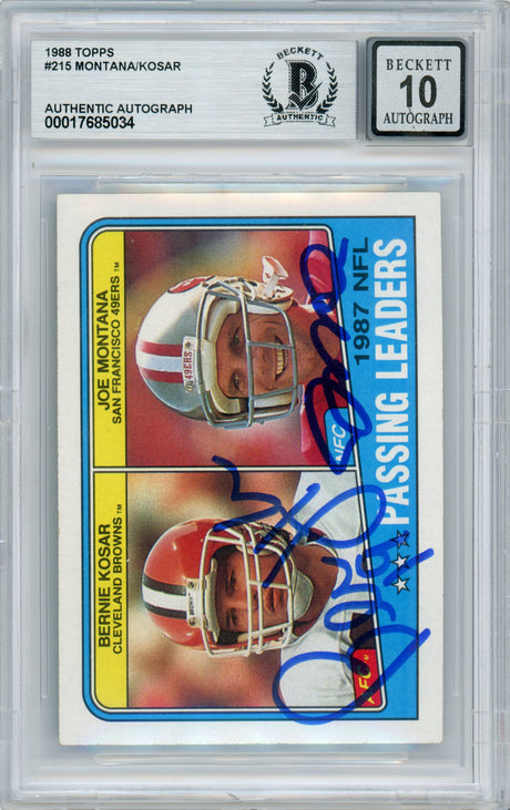 1988 Topps Passing Leaders #215 Joe Montana & Bernie Kosar BGS Autograph 10