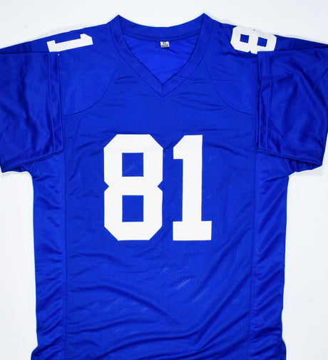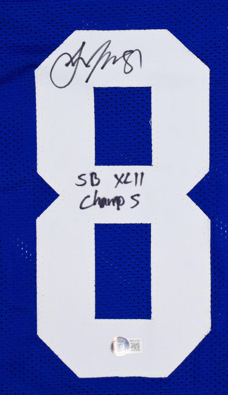 Amani Toomer Autographed Blue Pro Style Jersey w/SB Champs -Beckett W Hologram