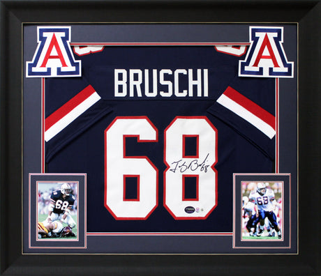 Arizona Tedy Bruschi Authentic Signed Navy Blue Pro Style Framed Jersey BAS Wit